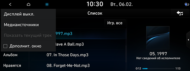 На экране отобразится список файлов, воспроизводящийся в данный момент.
