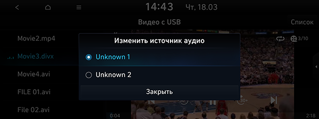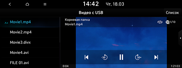 Можно воспроизвести файлы видео, сохраненные в памяти устройства USB.