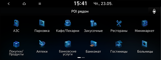 Цель: поиск точек интереса поблизости от текущего места назначения. Доступно только при наличии заданного места назначения.