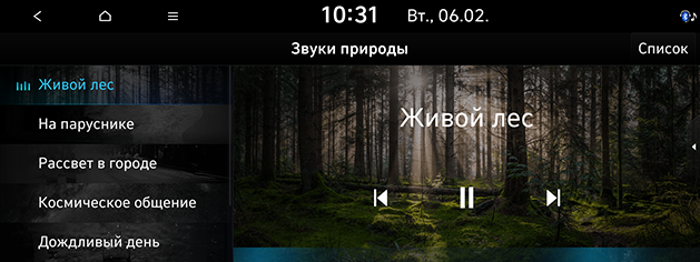 ] > Медиаисточники > Звуки природы, или переключайте кнопкой MODE на руле. -