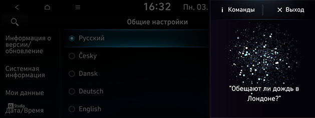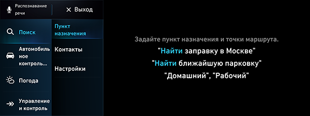 Нажмите кнопку распознавания речи и произнесите необходимую голосовую команду после звукового сигнала.