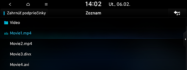 Stlačením tlačidla Zahrnúť podpriečinky sa bude opakovane prehrávať obsah vrátane podpriečinkov.
