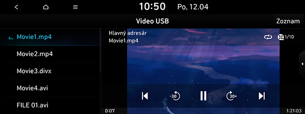 Môžete prehrať súbor vyhľadaním v zozname súborov na USB.