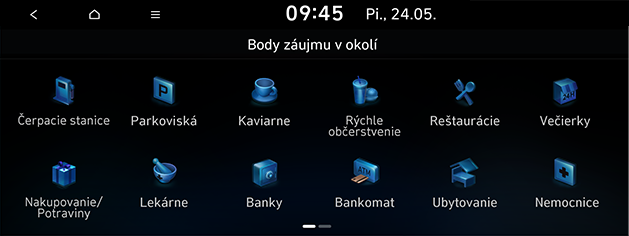 Stlačte tlačidlo NAV > Body záujmu v okolí.