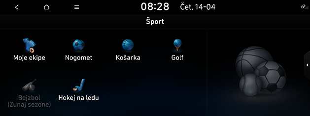 Šport: prikaže rezultate tekem in povezane informacije za vsak šport.
