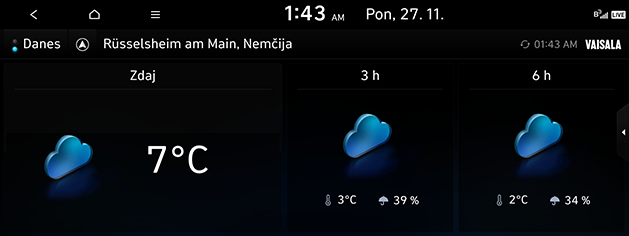 Vremenska napoved: prikazuje vremensko napoved za naslednjih 6 dni.