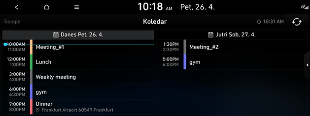 Prek aplikacije Bluelink za pametni telefon se poveže s koledarjem (Google, iCloud), ki ga uporabnik uporabi najprej.