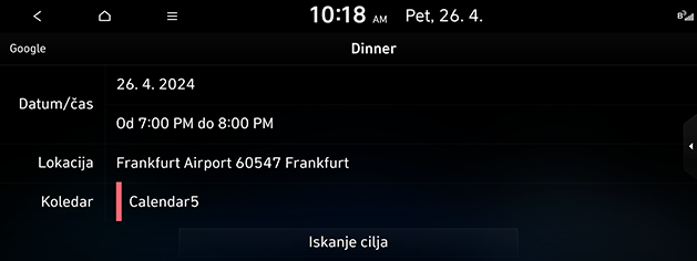 Če se na zaslonu s podrobnosti o urniku nahaja tudi podatek o kraju, navigacija poišče podatke o kraju, ko uporabnik pritisne gumb za iskanje cilja.