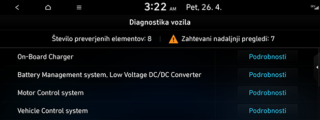 Če diagnostika vozila ni bila uspešna, se diagnostika samodejno izvede znova ob naslednjem vklopu vozila.