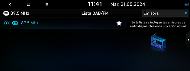 Pulse Emisora o Tipo programa en el modo DAB (si existe)/FM para ordenar la lista por tipo de emisora o programa.