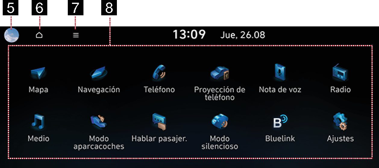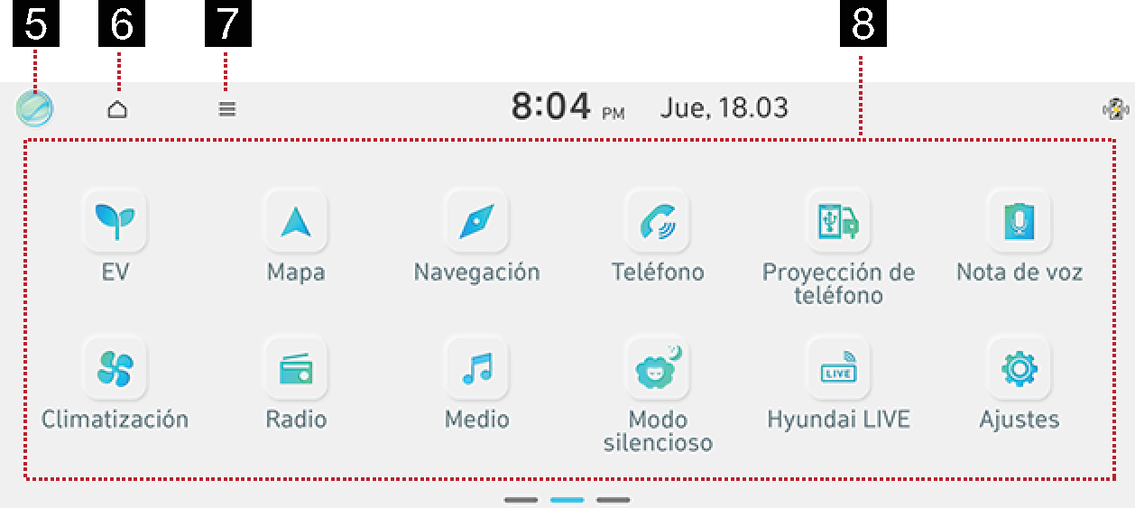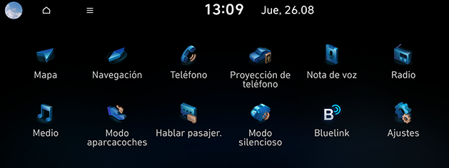 Hyundai LIVE (si existe): le dirige al menú Hyundai LIVE.