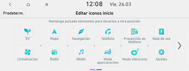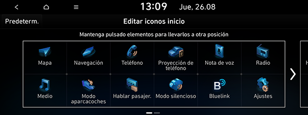Pulse Editar iconos inicio para editar los iconos de la pantalla de inicio.