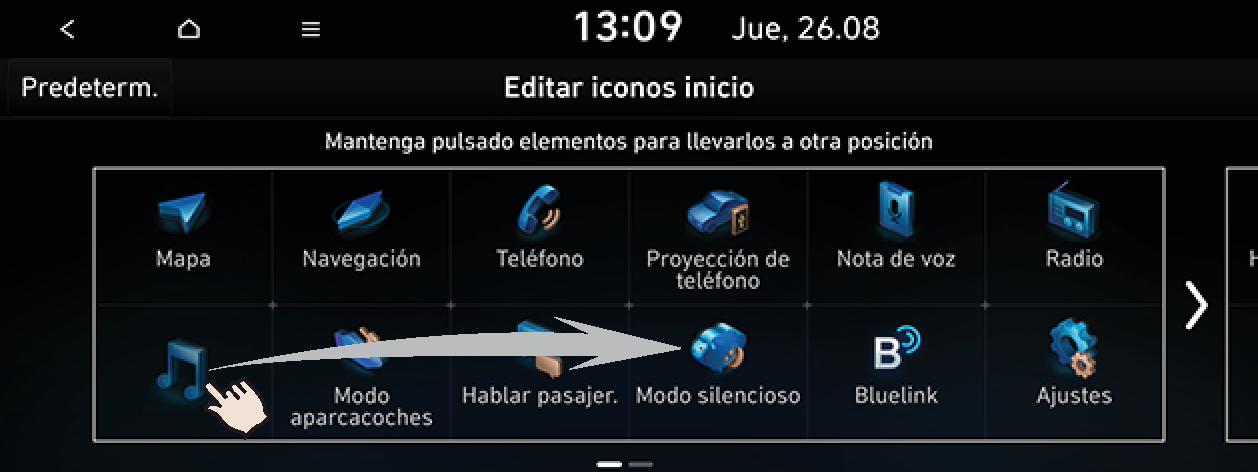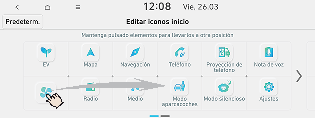Pulse Predeterm. para restablecer todos los iconos de inicio.