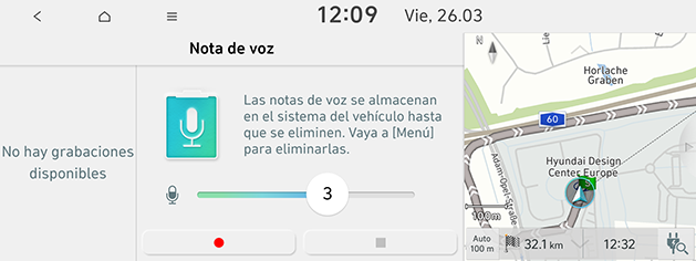 Mapa: muestra la pantalla del mapa de la posición actual.