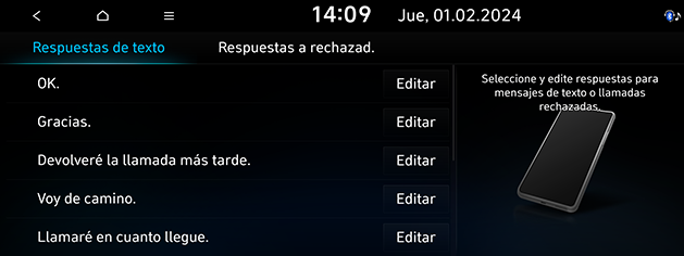 Puede seleccionar el mensaje deseado en Respuestas de texto o Respuestas a rechazad..
