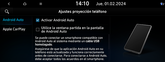 En este menú Android Auto y Apple CarPlay se pueden activar al configurar una marca de verificación.