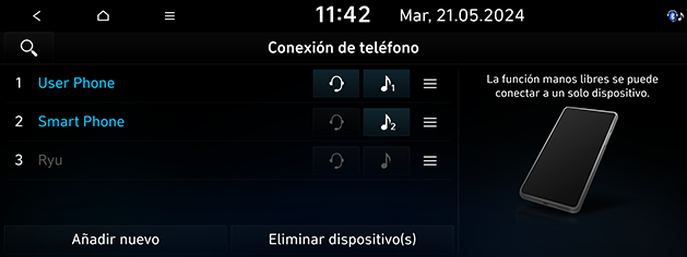 Muestra la lista de dispositivos Bluetooth emparejados. Cuando se selecciona un dispositivo en la lista, se conecta o desconecta.