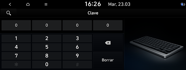 La clave de paso es un código de autenticación de 4 dígitos utilizado para una conexión Bluetooth entre el teléfono móvil y el sistema del vehículo. La clave de paso predeterminada es 0000.