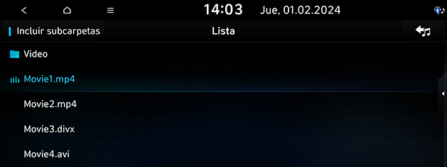 Si busca la lista de archivos incluidos en el USB, puede reproducir el archivo deseado.