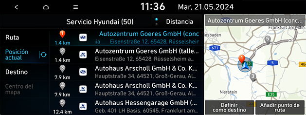 Posición actual: busca centros de servicio de Hyundai cerca de la posición actual del vehículo.