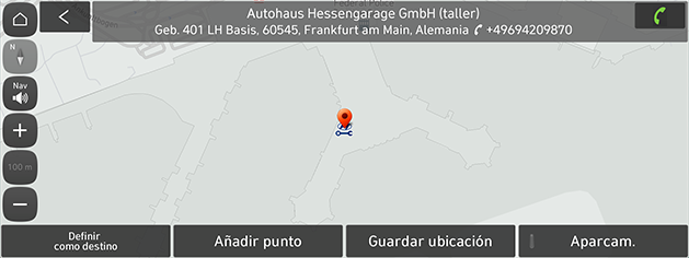 Guardar ubicación: guarda esta ubicación en Lista de direcciones. Cambia a la pantalla de edición de la agenda de direcciones.