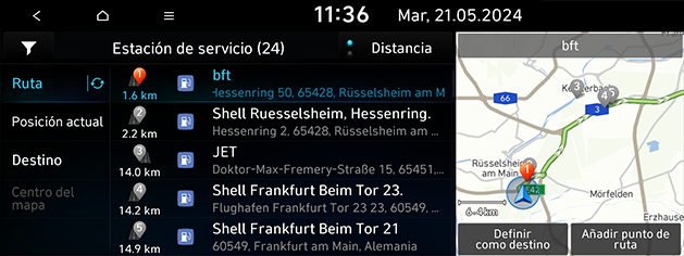 Posición actual: busca las estaciones de servicio cercanas a la posición actual del vehículo.