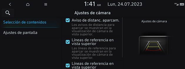 Selección de contenidos: ajusta la opción de visualización de las guías de aparcamiento.