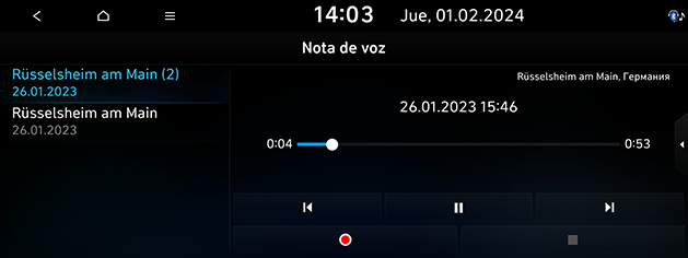 Para reproducir la nota de voz deseada, selecciónela en la lista de notas de voz.