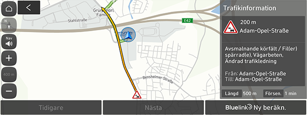Bluelink Ny beräkn.: Omberäknar rutten genom att reflektera trafikinformationen.