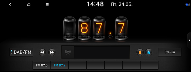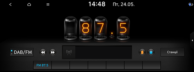 Перетягуйте повзунок на шкалі станцій вправо/вліво для пошуку потрібної частоти, або натисніть [