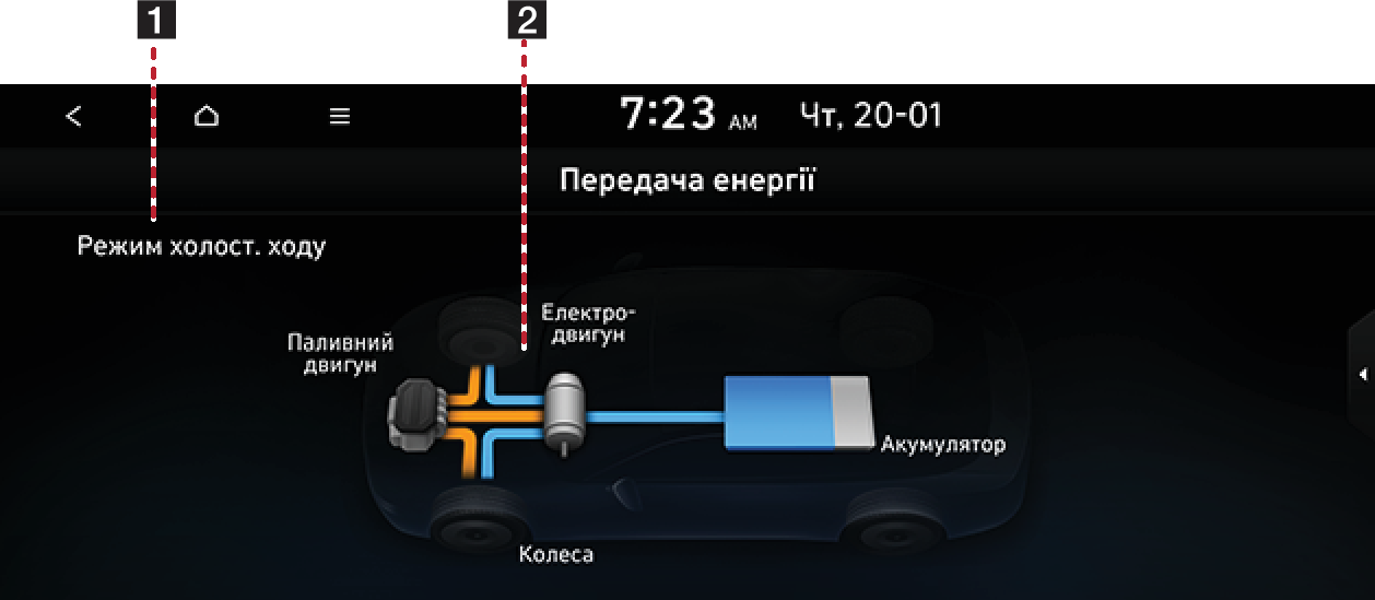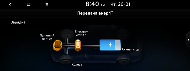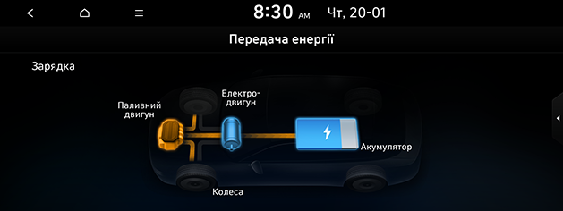 відображає стан подачі потужності до кожного компонента відповідно до руху автомобіля.