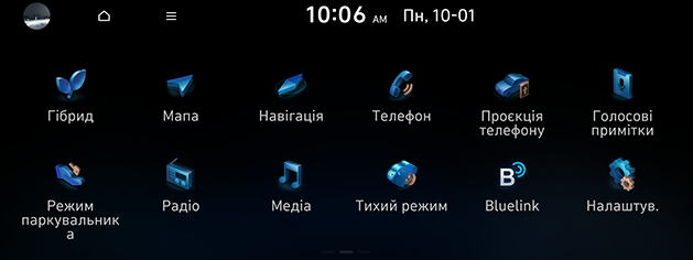 Екран меню для режиму Гібрид