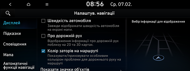 Про дорожній рух: вмикання або вимикання відображення дорожньої інформації на карті.