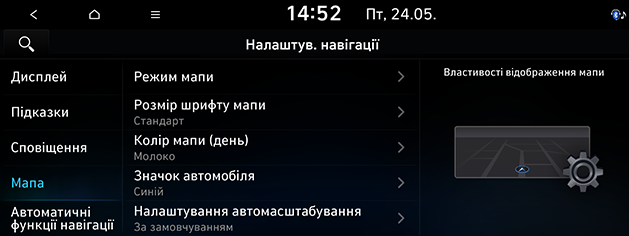 Натисніть SETUP > Навігація > Мапа.