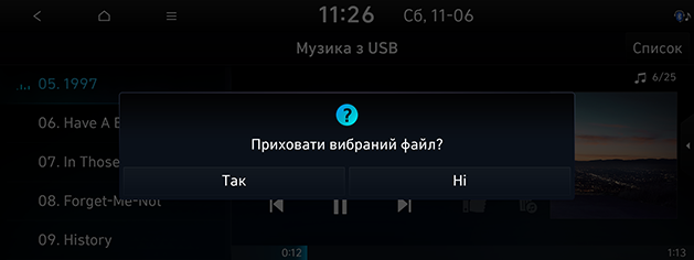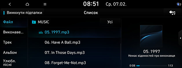 Можна відтворити потрібний файл шляхом його пошуку в списку файлів меню USB.