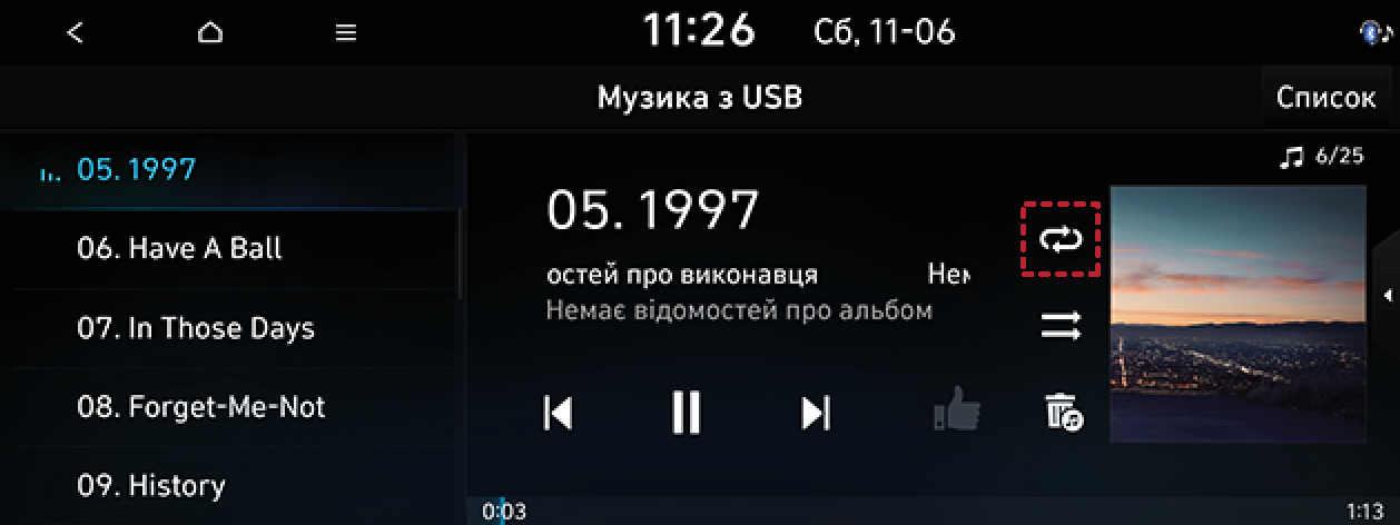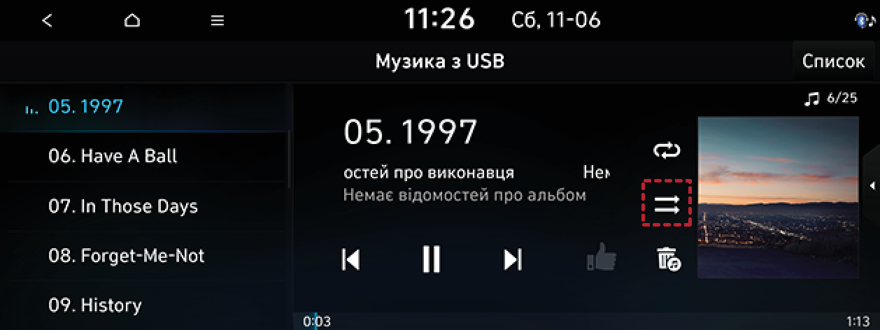 ]: Послідовне відтворення файлів із каталогів Виконавець, Трек, Альбом або Улюбл. пісні.