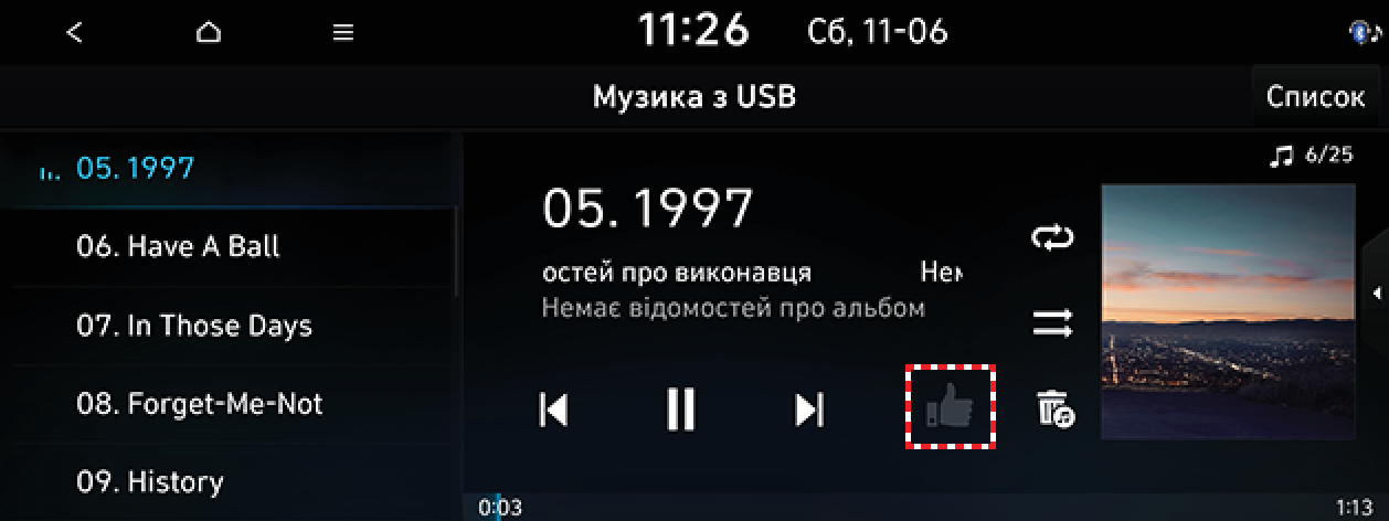 Ви можете додавати музичні композиції до категорії Улюбл. пісні і відтворювати їх.