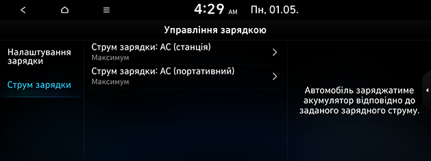 Натисніть PHEV > Управління зарядкою > Струм зарядки.