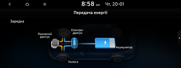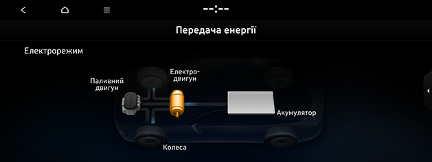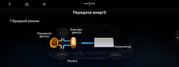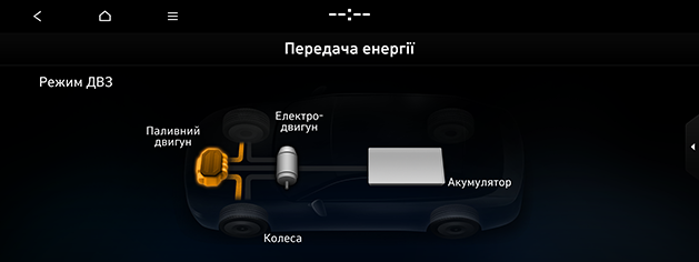 Відображає стан подачі потужності до кожного компонента відповідно до руху автомобіля.