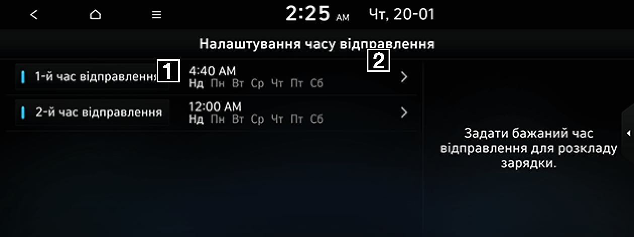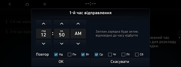 Встановлення бажаного часу від'їзду для графіка заряджання.
