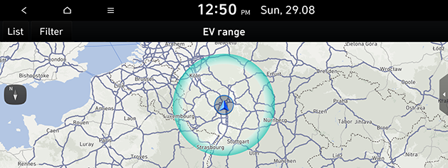 Відображає відстань можливої подорожі з поточним запасом пального та заряду батареї.