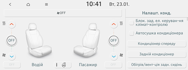Натисніть Обігрів/вент-ція задн. сидінь для налаштування обігріву/вентиляції задніх сидінь.