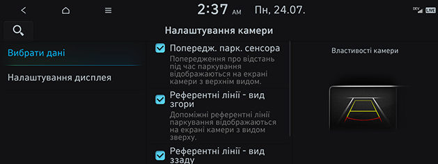 Вибрати дані: налаштування опцій допомоги під час паркування.