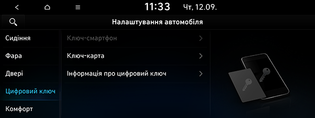Натисніть SETUP > Автомобіль > Цифровий ключ.