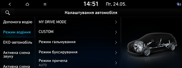 Натисніть SETUP > Автомобіль > Режим водіння.