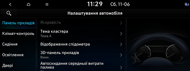 Натисніть SETUP > Автомобіль > Панель прилад..