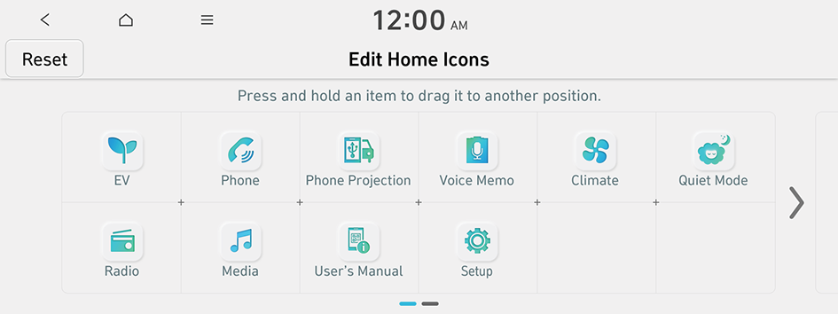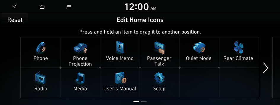 - To initialize the positions of icons, press Reset.