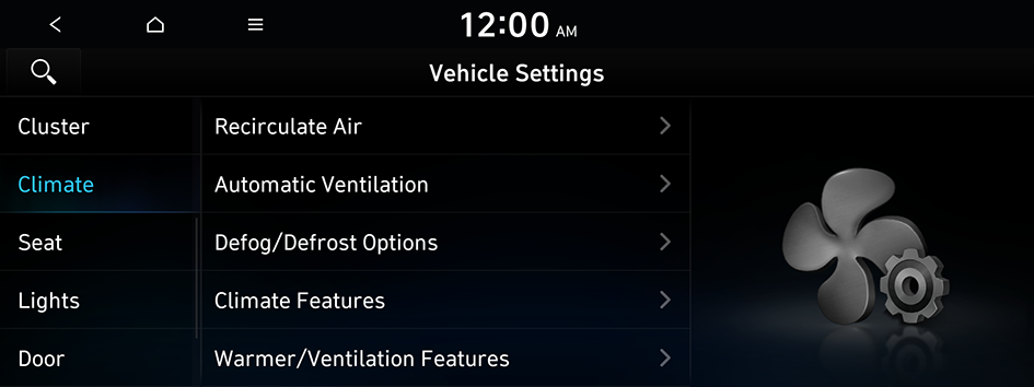You can set to make the driving environment pleasant by controlling the steering wheel warmer and driver's seat warmer/ventilation.