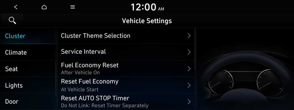 Make sure you stop the vehicle before changing settings to ensure safety.