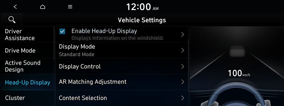 You can turn on the augmented reality (AR) head-up display function which displays information such as driving speed and road-related information while driving.